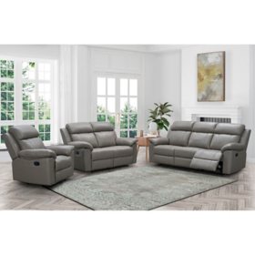 Grey Leather Reclining 3 Piece Living Room Set The Dump Luxe Furniture Outlet
