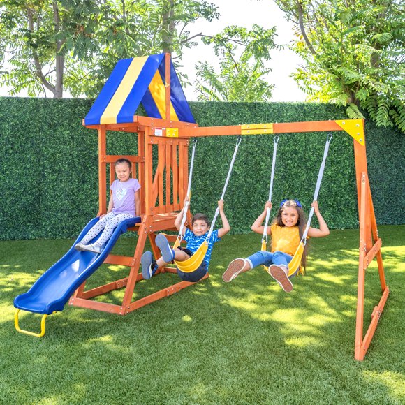 Sportspower Brooklyn Wooden Swing Set With 3 Swings Walmart Com