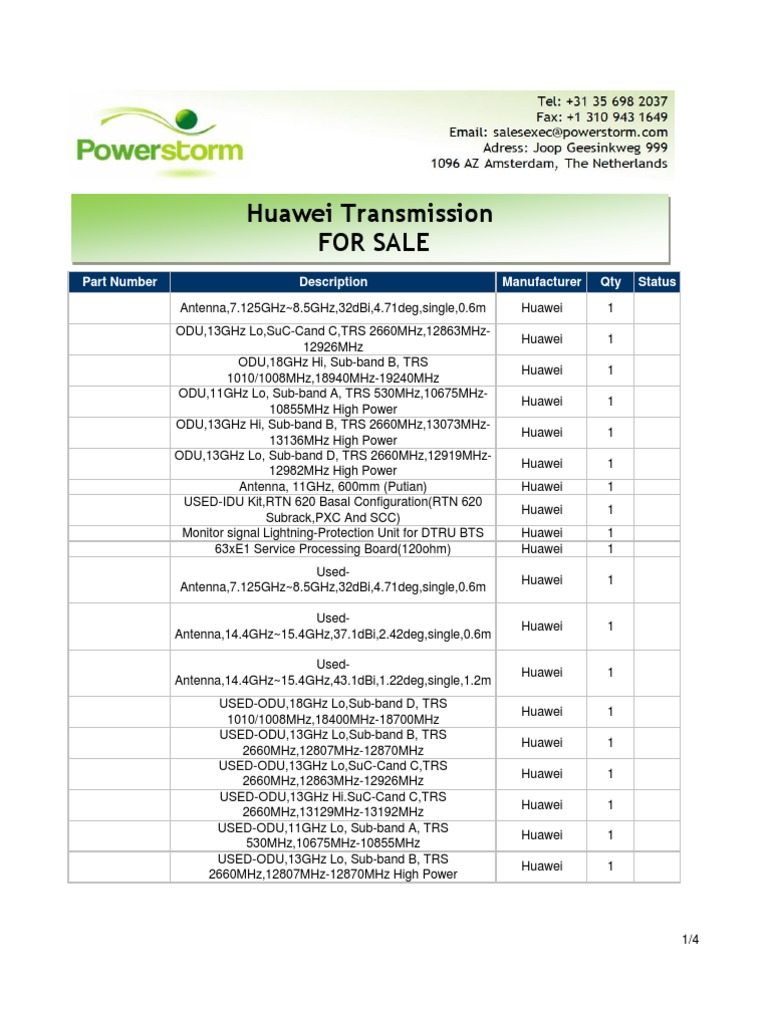 Huawei Transmission for Sale From Power Storm 4SN07121188 | Microwave